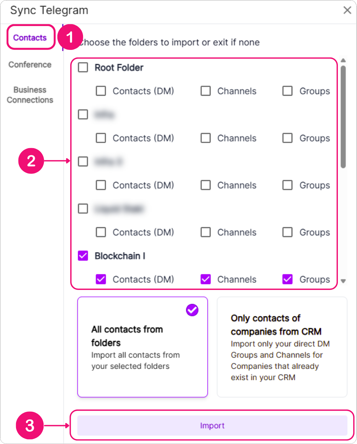 Once your Telegram account is connected, double-check that the right folders are synced — this step is essential.